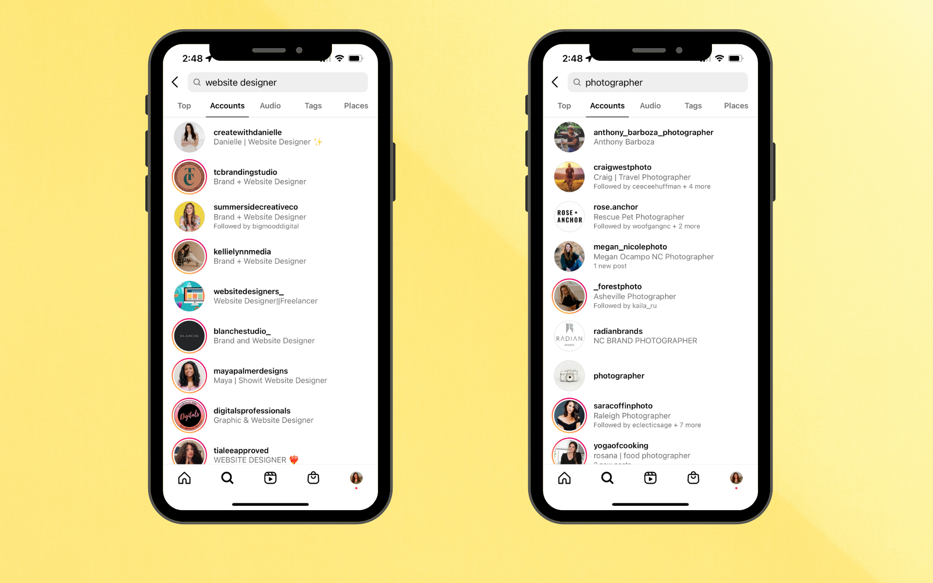 Instagram told us to show up in the search results, you’ll want to be strategic about choosing your handle and profile name.